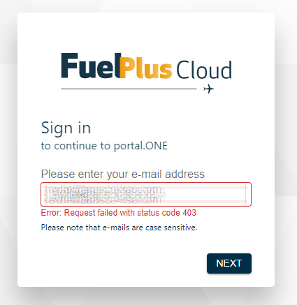 When your system time is not correct you might get the Request failed with status code 403 error message after you enter your email address and select to continue. Please make sure your system clock is in sync with a time server.